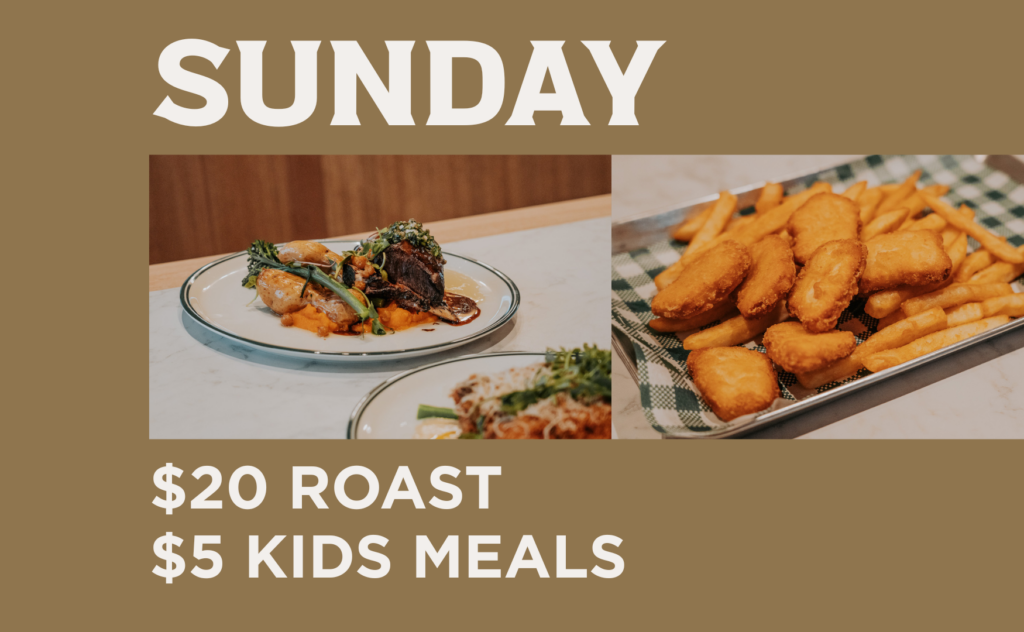 Enjoy a classic $20 roast alongside $5 kids meals, perfect for a relaxed Sunday.
